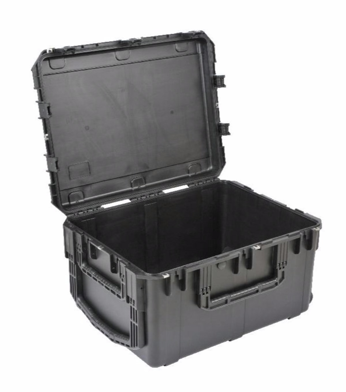 SKB iSeries Injection Molded Mil-Standard Waterproof Cases are molded of ultra high-strength polypropylene copolymer resin, featuring a gasketed, water and dust tight, submersible design (MIL-C-4150J) that is resistant to corrosion and impact damage. Features a molded-in hinge, patented trigger release latch system, comfortable, snap-down rubber over-molded cushion grip handle, automatic ambient pressure equalization valve (MIL-STD-648C), resistance to UV, solvents, corrosion, fungus and impact damage (MIL-STD-810FRead the Certified 3I Series Waterproof Test (PDF) Read the Certified 3I Series Drop Test (PDF)