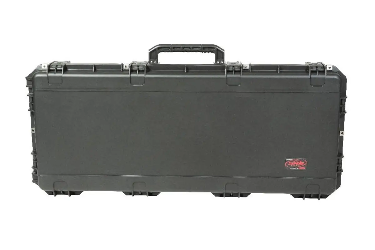 The iSeries 4719 Ultimate Single/Double Bow Case easily converts from a single bow case with a removable accessory tray to a double bow case in seconds and offers all of the features of our iSeries cases.The case offers a bunk-bed style foam divider with a removable, adjustable accessory tray on the lower level to hold all of your arrows, a long target stabilizer (up to 36" long), quiver, optics and other accessory items. By removing the accessory tray, the case will accommodate two bows, one up to 46" long and the other up to 44" long.The case has 8 latches, 2 on each end and 4 on the front. 3 handles adorn the case while a medium- sized handle is equipped on each end should you and a friend need to "coffin carry" over extreme terrain. A large handle is situated on the latch side for standard carry should the nicely-sized wheels not suffice. The iSeries 4719 Ultimate Single/Double Bow Case has a uni-body design, which eliminates the need for excessive metal reinforcing hardware found on traditional flight cases. This case is under 33 lbs. empty. The case is covered by SKB's unsurpassed Lifetime Warranty and the $1500 Content Coverage if your gear is damaged by an airline.The iSeries injection molded waterproof cases are constructed of ultra high-strength polypropylene copolymer resin and feature a gasketed, waterproof and dustproof, submersible design (IP67) that is resistant to corrosion and impact damage. The molded-in hinge with stainless steel hinge pins, patented "trigger release" latch system, comfortable, snap-down rubber over-molded cushion grip handles, secure stacking, and automatic ambient pressure equalization valve (MIL-STD-648C) all contribute to its military grade design.