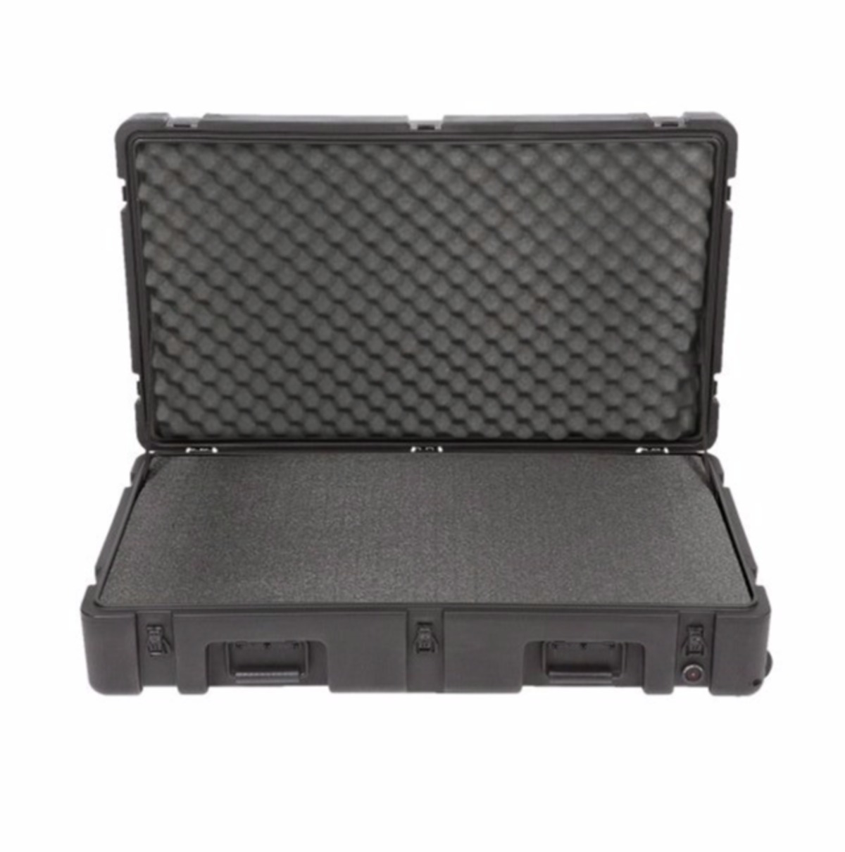 The 3R3821-7 Roto Molded Waterproof Utility Case is the "big brother" to our 3R3221-7, and includes convenient 2" wide edge wheels for easy transport.These Mil-Standard cases were designed to meet the most demanding military specifications. They are roto-molded for strength and durability, airtight and water proof with solid stainless steel latches and hinges that will withstand the most demanding shipping conditions.The 3R Mil-Std. Cases are molded of (LLDPE) polyethylene impact resistant / UV stabilized material and meet or exceed MIL-STD 810 and MIL-C-4150J specifications.The shipping cases are all available with an empty interior while some models are available with: cubed foam, layered foam, padded dividers, and a pull handle with wheels.Wheel options vary by case.