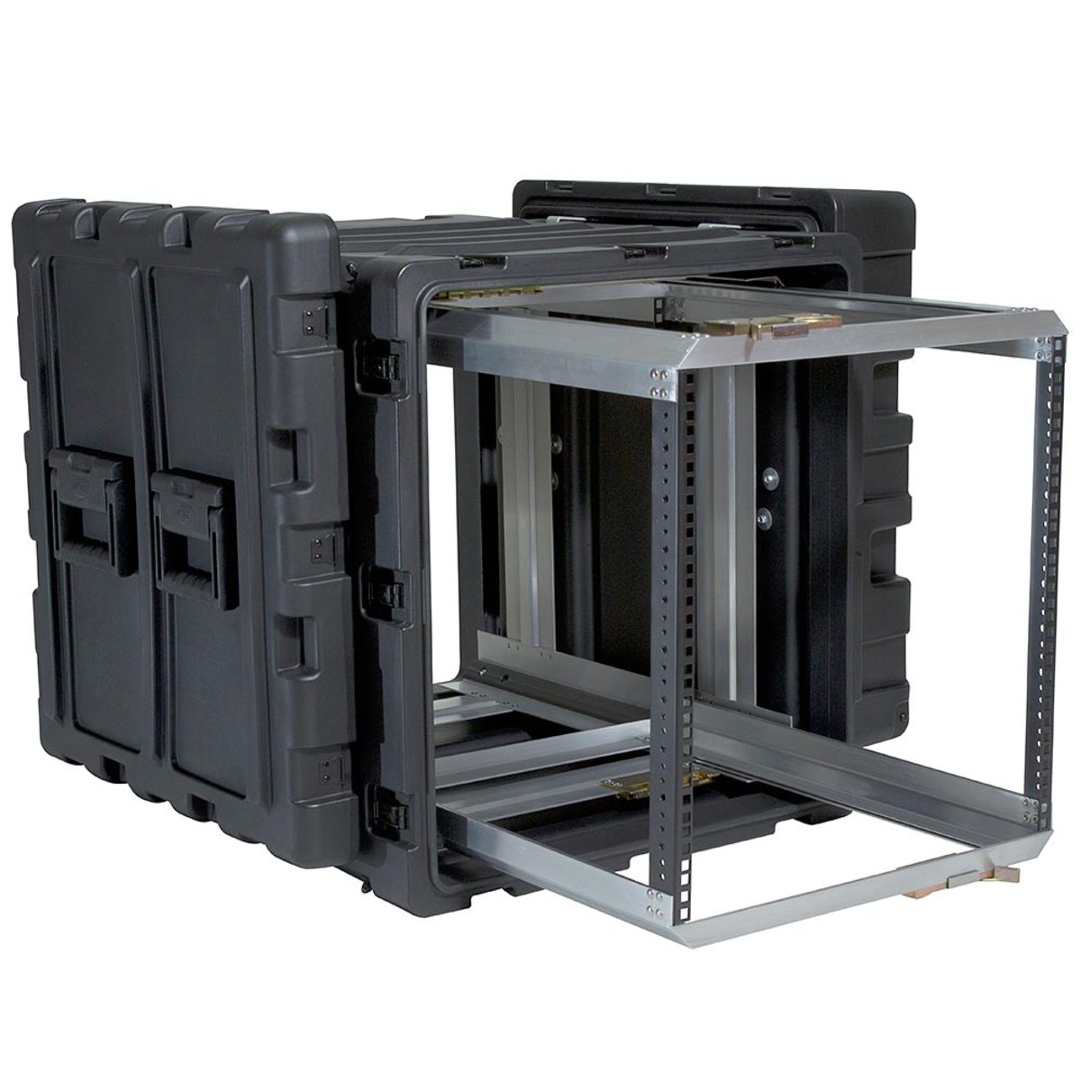 SKB’s 3RR Series Removable Shock Rack Transport cases are available in 8 sizes: 3U, 4U, 5U, 6U, 7U, 9U, 11U and 14U. These Shock Racks are lightweight, shockproof, watertight, dustproof, heat and chemical resistant, perfect for protecting and transporting your sensitive electronic equipment.