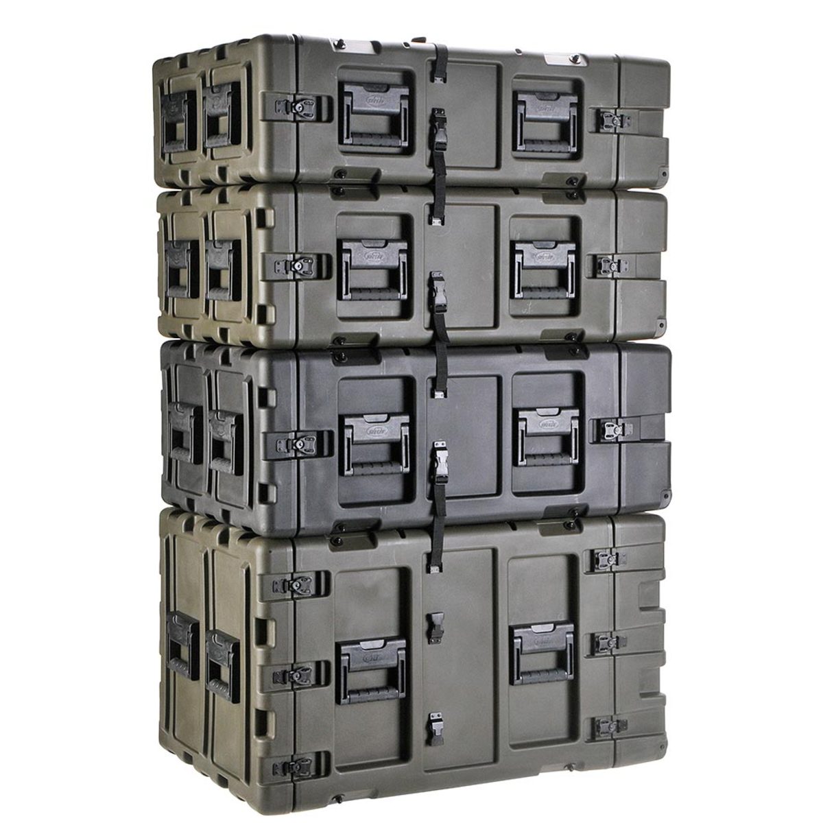 - Molded in stacking ribs and lugs are designed to stack with competitive manufacturers cases