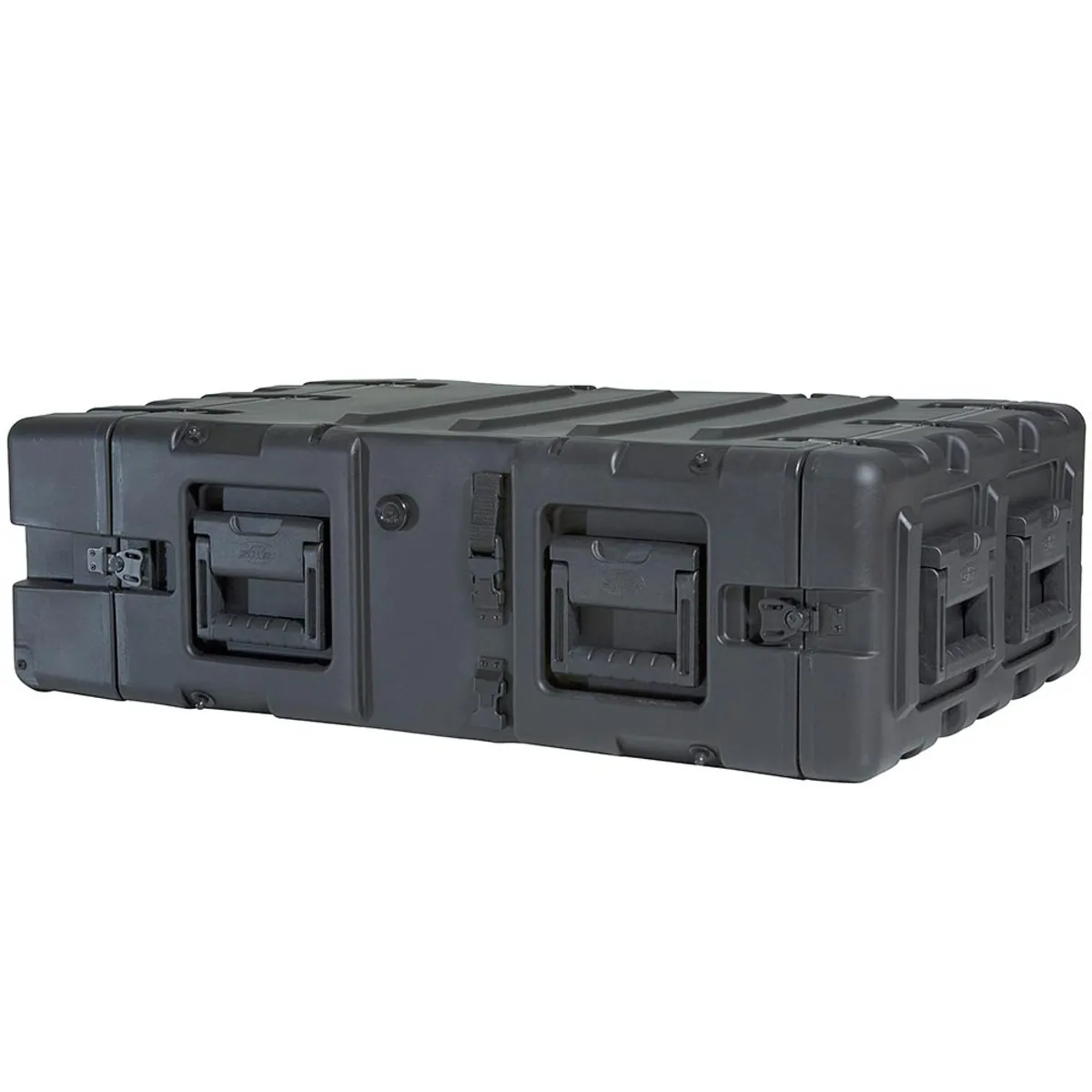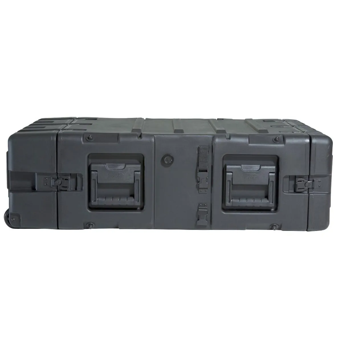 The rugged roto-molded shell ensures industry leading strength and impact resistance. The standard COTS (commercial off the shelf) case comes with a 2” deep front lid and a 5” deep rear lid to accommodate rack gear that is longer than 24”, and edge casters to allow convenient case transport. Molded-in stacking ribs and lugs are designed to stack with competitive manufacturers cases. Black powder coated stainless steel hardware are recessed for protection is standard as well as 8 comfort grip spring loaded lift handles which allow for easy movement. An automatic pressure relief valve is another standard feature along with gasket sealed lids that include convenient lid hangers to store your lids when your equipment is in operation. Coupling straps are included for securing the racks together when stacked.