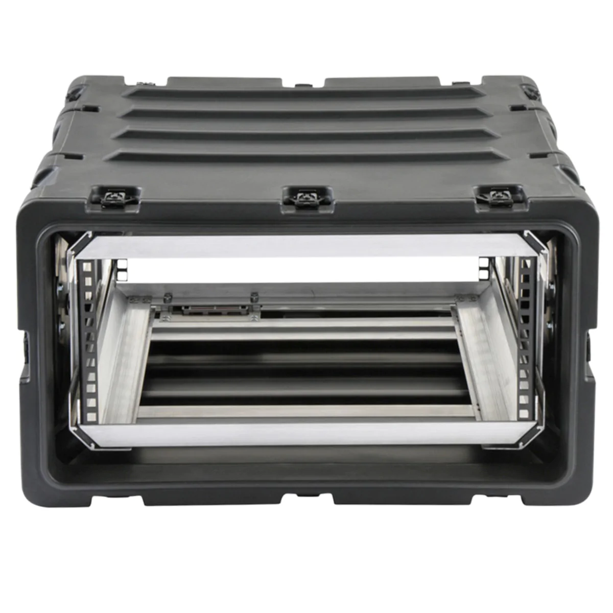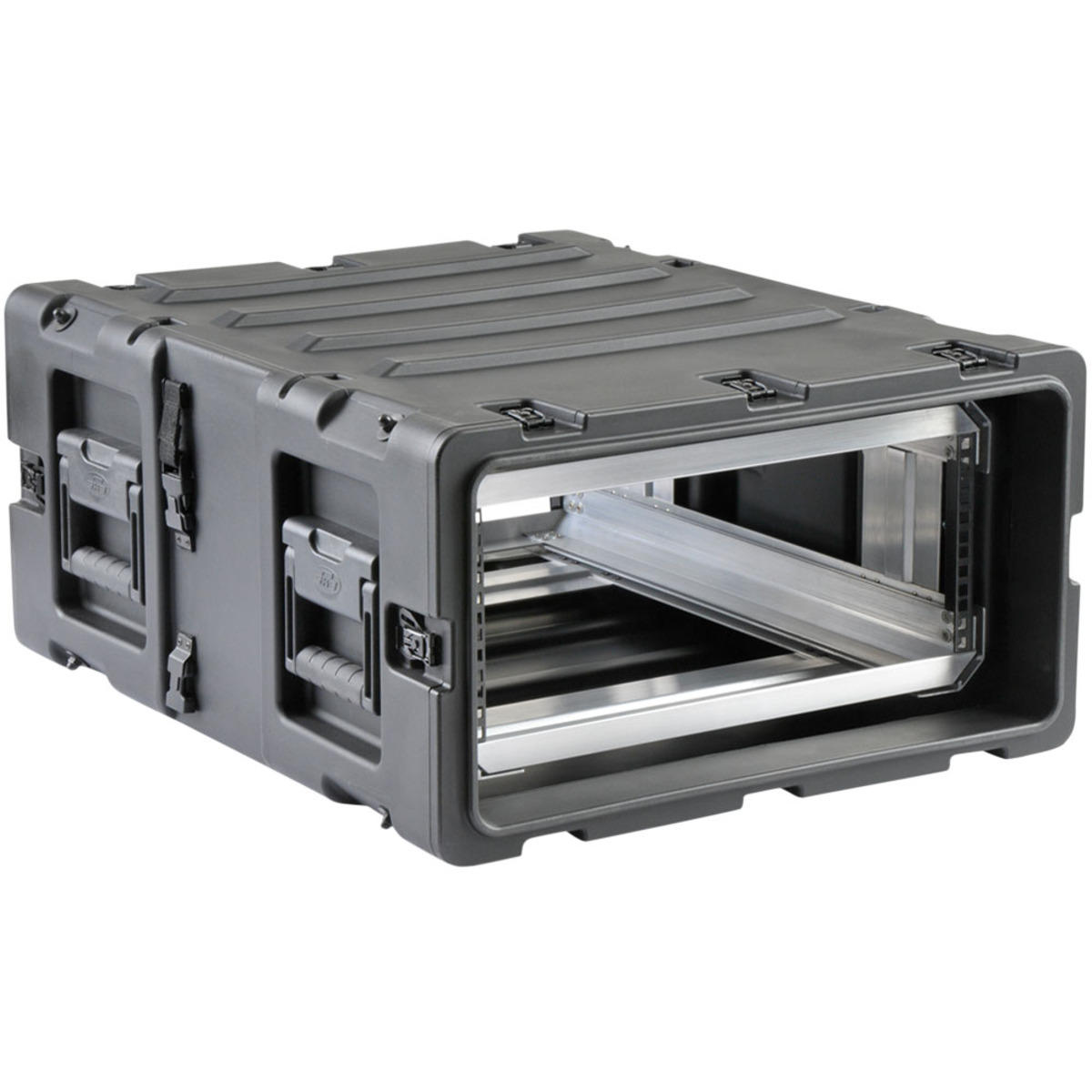 The 4U SKB Shock Rack (3RR-4U24-25B) is a 19″ rack from SKB’s 3RR Series and represents the pinnacle of SKB’s rack cases. These shock rack cases are tougher, lighter, stronger and better than any other rack case out there in the market. The removable rack option saves time and money by eliminating the hassle of dealing with cables and screws in small, limited spaces—just take the rack out, change the equipment, and slide the rack in again.
