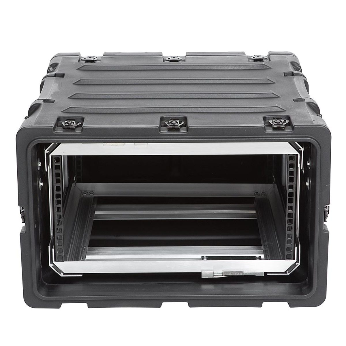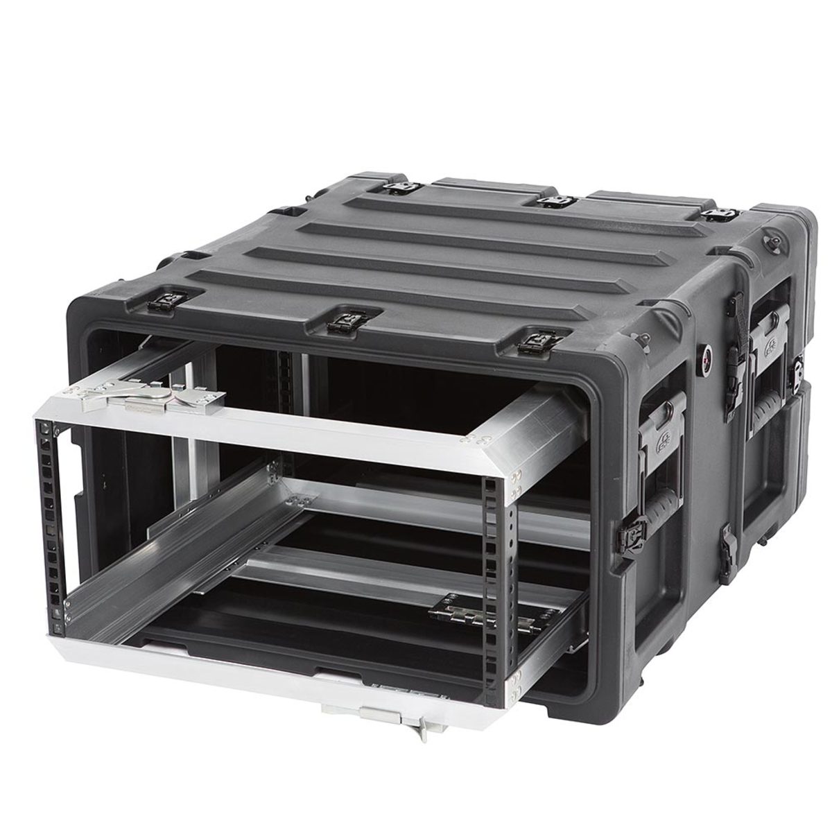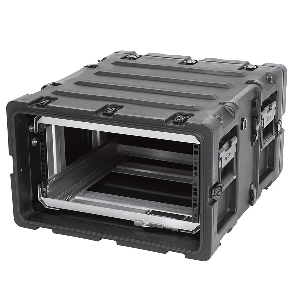 The rugged roto-moulded shell ensures industry leading strength and impact resistance. The standard commercial off the shelf (COTS) case comes with 2″ deep front and rear lids to accommodate rack gear that is longer than 20″. Moulded-in stacking ribs and lugs are designed to stack with all SKB 3RR and 3RS cases, as well as competitive manufacturer cases, and feature black powder coated stainless steel hardware that is recessed for protection and 4 comfort grip spring loaded lift handles which allow for easy movement. An automatic pressure relief valve is another standard feature along with gasket sealed lids that include convenient lid hangers to store your lids when your equipment is in operation. Coupling straps are included for securing the racks together when stacked.