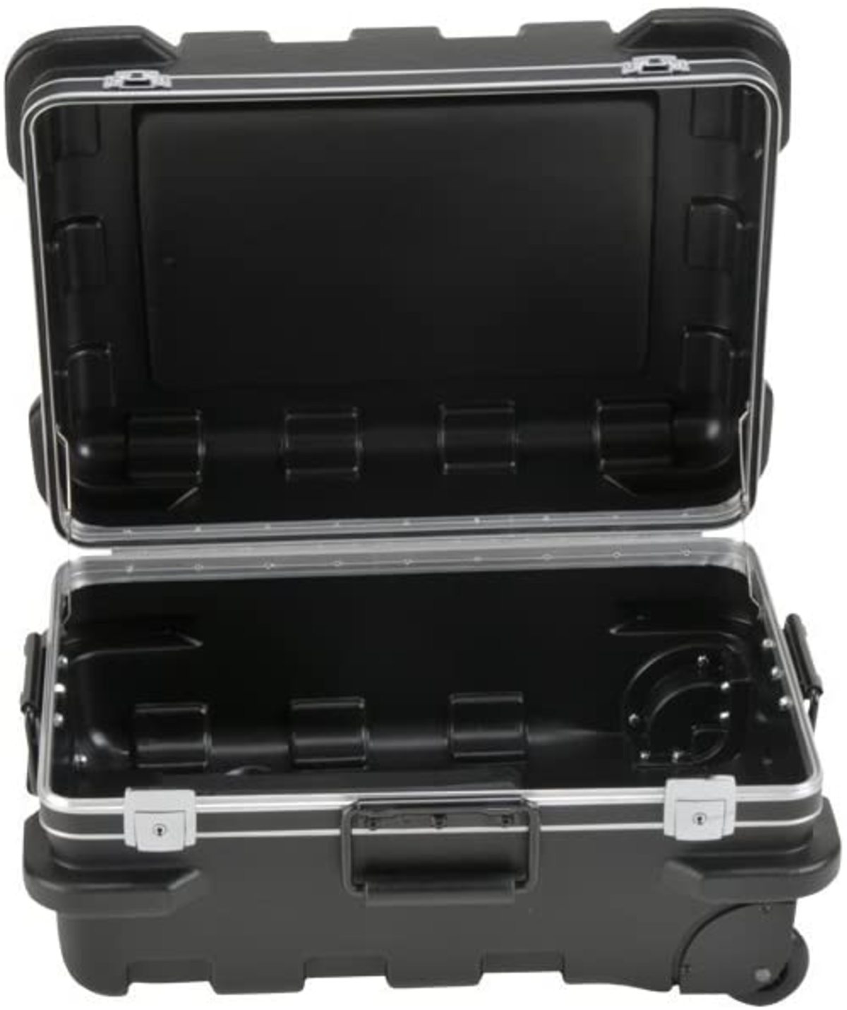 Telescoping, retractable pull-handle convenience combined with maximum strength and durability help this line of transit cases set a new industry standard. Molded of high density polyethylene with designed-in "roller-blade" style wheels. Molded-in bumpers defend these cases from impact damage.
