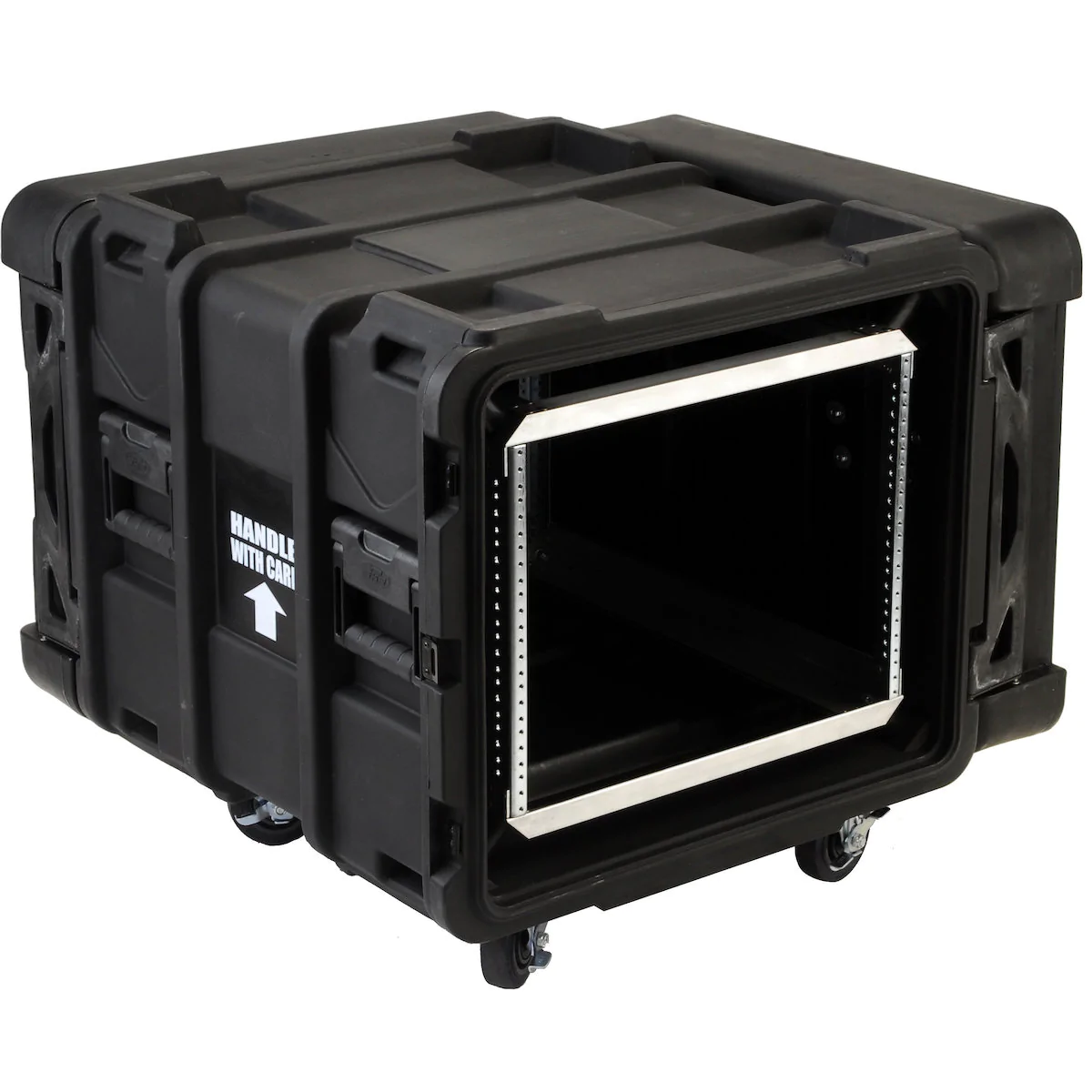 The 3SKB-R908U24 cases are roto-moulded to provide excellent strength, durability, and protection. The supplied caster kit ensures that transport has never been easier—no more heavy lifting and carrying. For efficient and secure transport, these Shock Racks stack perfectly even with the casters mounted!