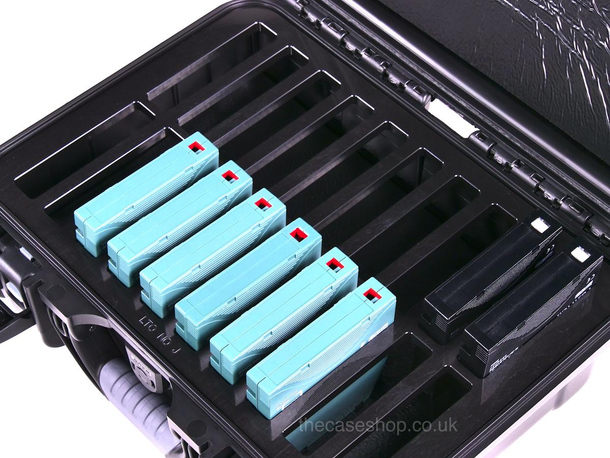 This waterproof heavy duty case stores 20 LTO tapes without their plastic jewel boxes and provides protection against the key problems that cause data loss: