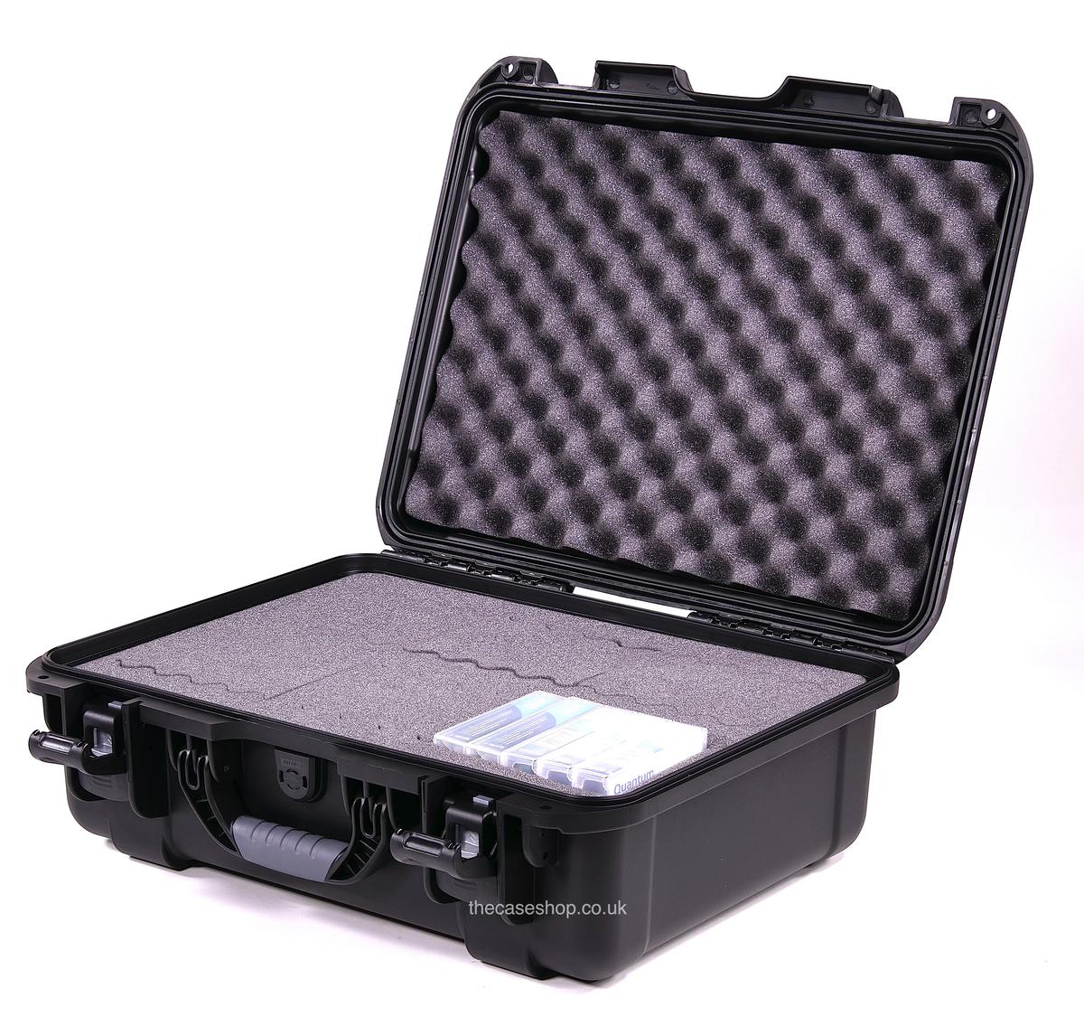 - Airtight and waterproof case composed of a polypropylene shell with stainless steel hardware