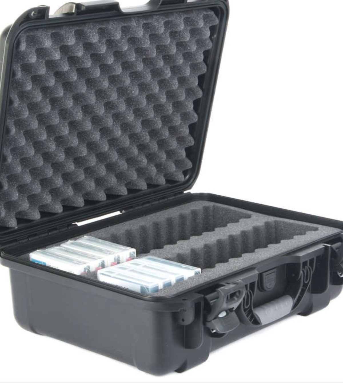 - Foam insert with two grooved compartments, holds up to 30 LTO or DLT tapes inside their own boxes