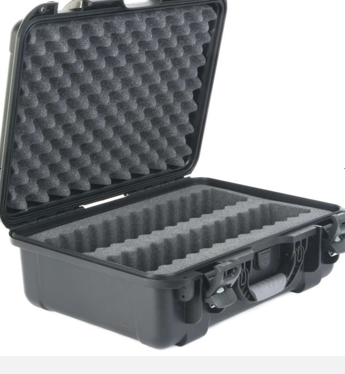 With an IP67 rating and heavy-duty construction, the Tape 30 Case with Foam Set from Turtle is designed to be completely dustproof and watertight to 3.3' in depth. It is useful for transporting magnetic tapes, meeting ATA standards for flight travel and using a comfortable folding handle for carrying. Inside the case is a custom foam insert featuring two large pockets with grooves, offering space for up to 30 LTO or DLT tapes with their plastic boxes.